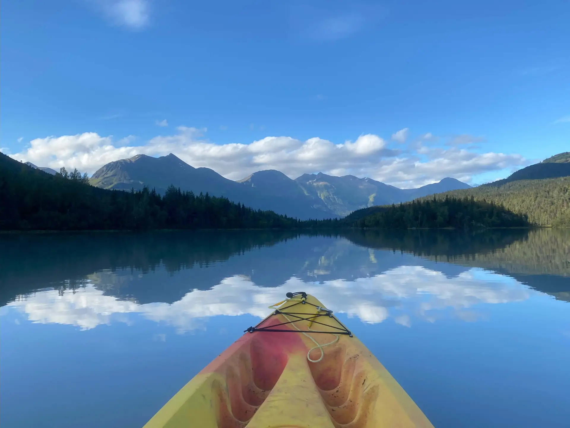 In Moose Pass, you’ll gear up and join a guided kayak tour on Trail Lake, a glacially-fed lake ringed by dramatic mountain views. The on-water experience is designed to work well for beginners and families while still feeling like a true Alaska adventure.